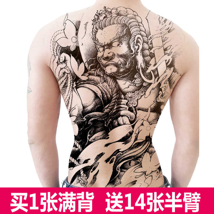 纹身贴防水持久不动明王如来佛祖手臂大图仿真个性佛字半臂刺青